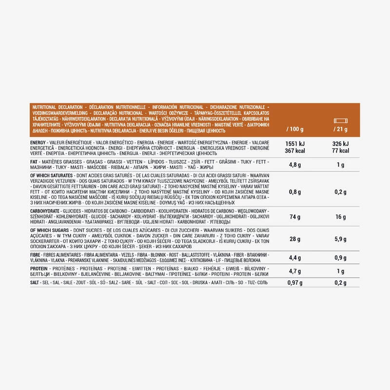 Valeurs nutritionnelles : 100g | 21g (=1 barre)